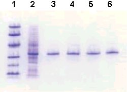 The performance of the QuickPick GST kit in purifying a GST-fusion protein is illustrated by the example below in which GST-Btk SH3 (a GST fusion protein of Bruton’s tyrosine kinase SH3 domain) expressed in E. coli was isolated using the QuickPick GST kit. The cells were lysed in 20 mM Tris-HCl buffer, pH 7.0 before purification.