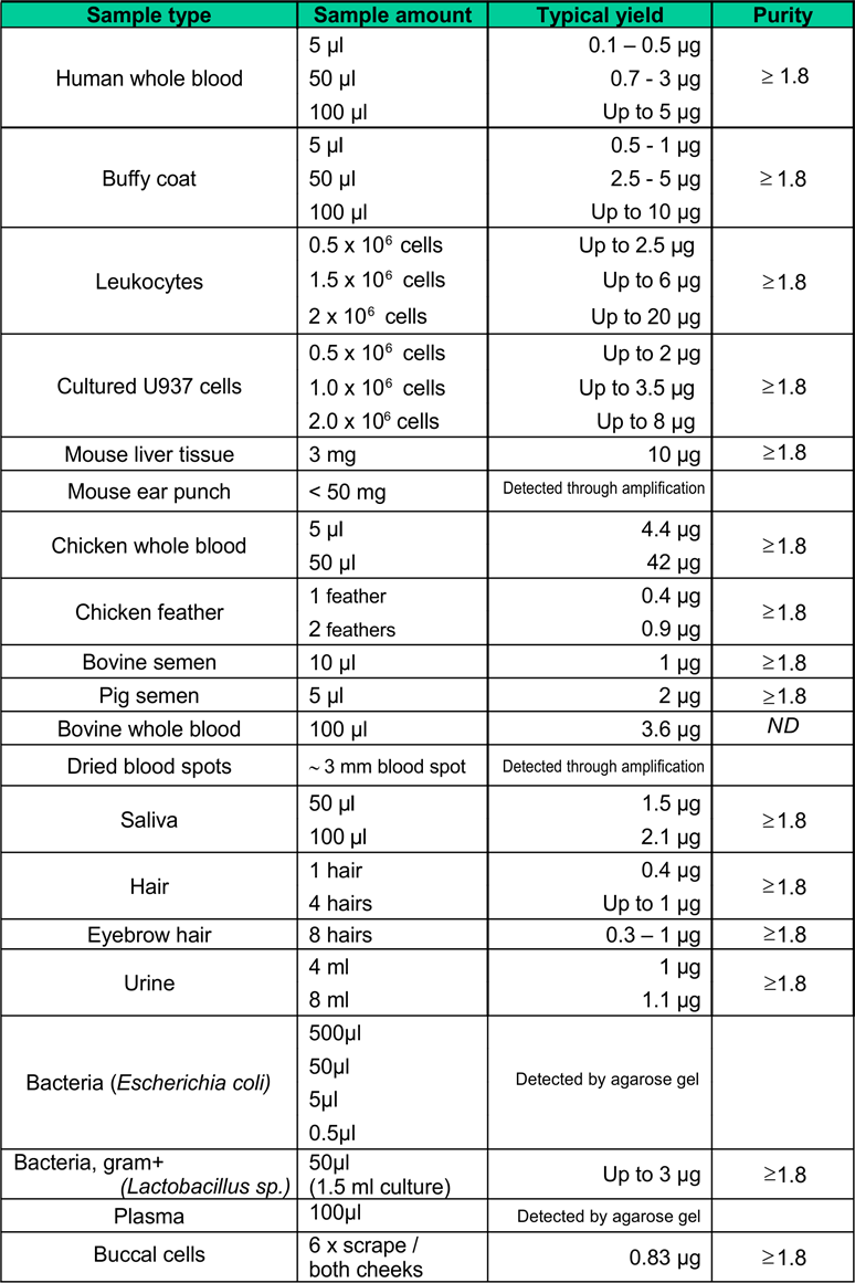 QuickPick™ SML gDNA kit - samples and yields